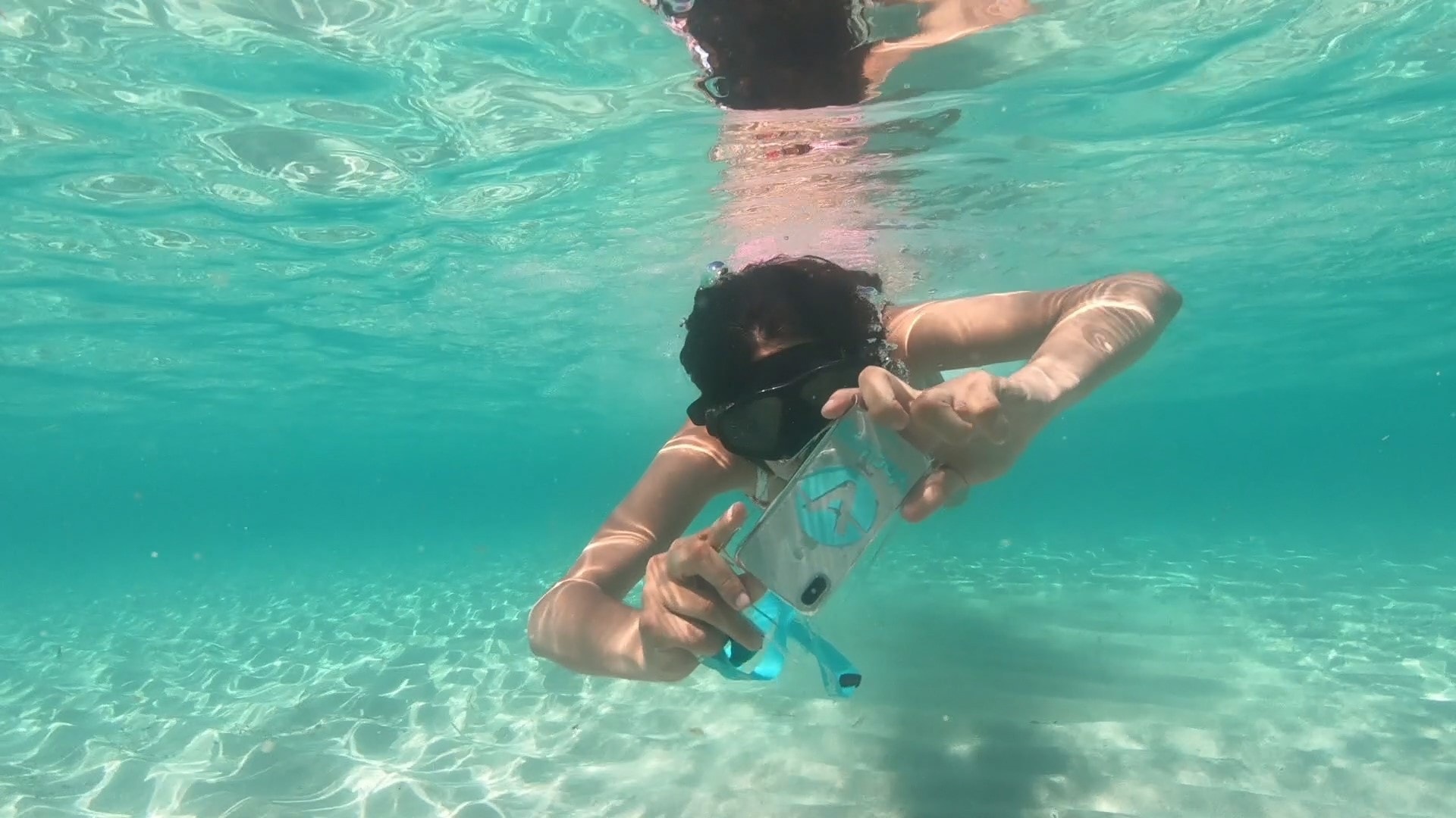 Completely transparent, this waterproof case maintains touchscreen sensitivity and allows for crystal-clear photos, even underwater.